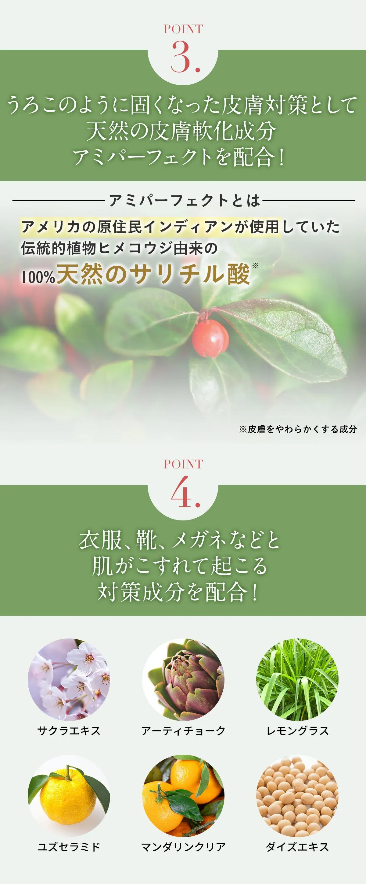 水、BGスクワラン、イソステアリン酸、イソブチル水添ポリイソブテン、ジメチコン、ジグリセリン、セタノール 、イノシトール、テトラヘキシルデカン酸アスコルビル、グリチルリチン酸2K、ヒメコウジ葉エキス、o-シメン-5-オール、ツボクサエキス または ツボクサ葉エキス、尿素、ヒアルロン酸Na、加水分解ヒアルロン酸、加水分解ヒアルロン酸アルキル(C12-13)グリセリル、スイゼンジノリ多糖体、アルギニン、フィチン酸、酸化銀、ブチルカルバミン酸ヨウ化プロピニル、(カプロイル/ラウロイル)ラクチレートNa、クエン酸トリエチル、キハダ樹皮エキス、チャ葉エキス、キシリチルグルコシド、キシリチルグルコシド、キシリチルグルコシド、ソメイヨシノ葉エキス、アーチチョーク葉エキス、レモングラス葉/茎エキス、ユズ果実エキス、マンダリンオレンジ果皮エキス、ダイズ種子エキス、クロレラエキス、ヒト脂肪細胞順化培養液エキス、ニオイテンジクアオイ油、ラベンダー油、プロパンジオール、乳酸、水酸化Na(クエン酸/乳酸/リノール酸/オレイン酸)グリセリル、オリーブ果実油、ポリソルベート60、トロポロン、ヒドロキシプロピルシクロデキストリン、ステアリン酸グリセリル、ステアリン酸グリセリル(SE)、ステアリン酸PEG-10、ステアリン酸PEG-45、ステアリン酸、トコフェロール、カルボマー、(ジメチコン/ビニルジメチコン)クロスポリマー、1,2-ヘキサンジオール、カプリリルグリコール、フェノキシエタノール